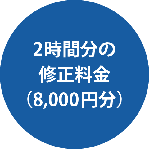 ※基本修正料金が2時間で8,000円となりますので、プラス3,000円分を差し引いても、5,000円分お得になります。